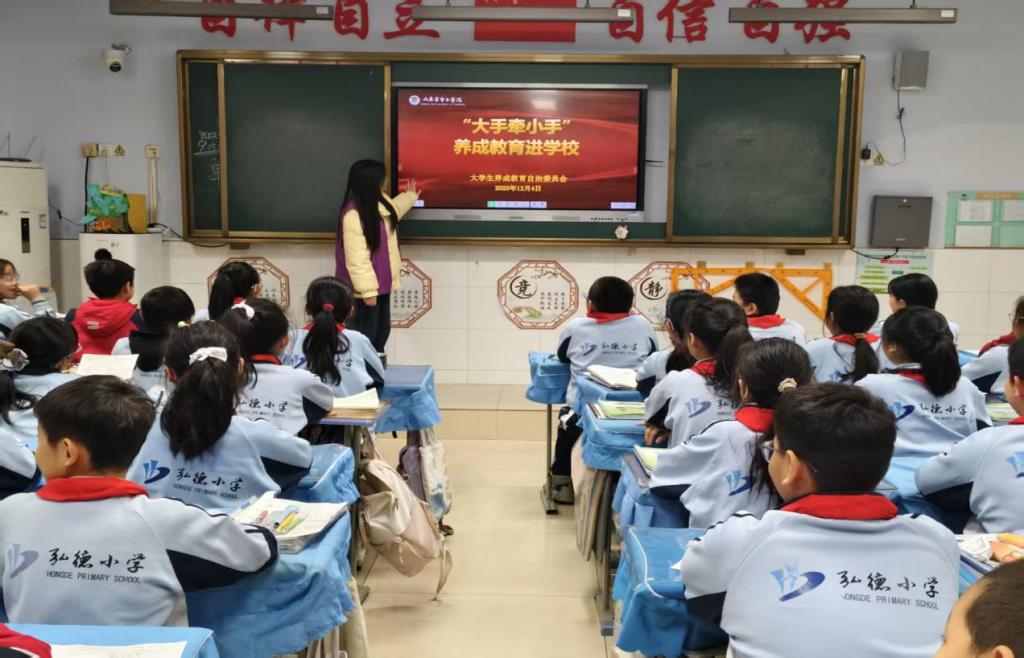 2025年12月4日,我校组织组成宣讲团队前往弘德小学,开展“大手牵小手”养成教育进学校活动,通过特色班级宣讲,传递良好阅读方法与卫生知识,养成良好习惯,促进大、小学生的共同成长。